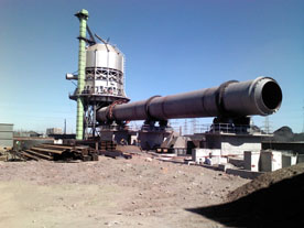 石灰冷却机:竖式冷却机是活性石灰的主机之一。经过回转窑煅烧之后生成的活性石灰顺次流入到镶有耐火材料的竖式冷却机中,冷却器的截面为正方形,在其中均匀分布有中心冷风帽和分室冷风帽,风帽设有管道与外部的风机相连接,在冷却器的底部设有排料口,每个排料口下有一台电机振动卸料器。物料在冷却器内堆积覆盖在风帽上,并形成一定的料层厚度,冷却风由外部风机吹入,通过风室进入风帽。从风帽窜出后与高温物料相接处,完成热交换,被空气冷却后的物料,在电机振动卸料器的作用下逐渐排除冷却器,被物料加热的空气,直接由窑头罩进入回转窑,作为二次空气参与燃烧。