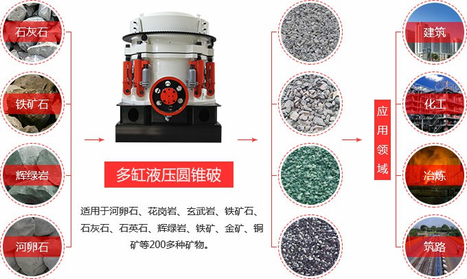 多缸液压圆锥星空平台-星空(中国) 适用于破碎中等和中等以上硬度的各种矿石和岩石等,如石灰石、铁矿石、鹅卵石、有色金属矿石、花岗岩、玄武岩、石灰岩、石英岩和沙岩等。其高转速、高破碎容量与特殊的专利设计令破碎后的成品具有极其优质的立方体型,而易于维护的特点又可确保超凡的高稳定性操作,在世界各地享有盛名,是当今矿山建筑行业替代弹簧圆锥星空平台-星空(中国) 和更新一般液压圆锥星空平台-星空(中国) 的新一代产品。